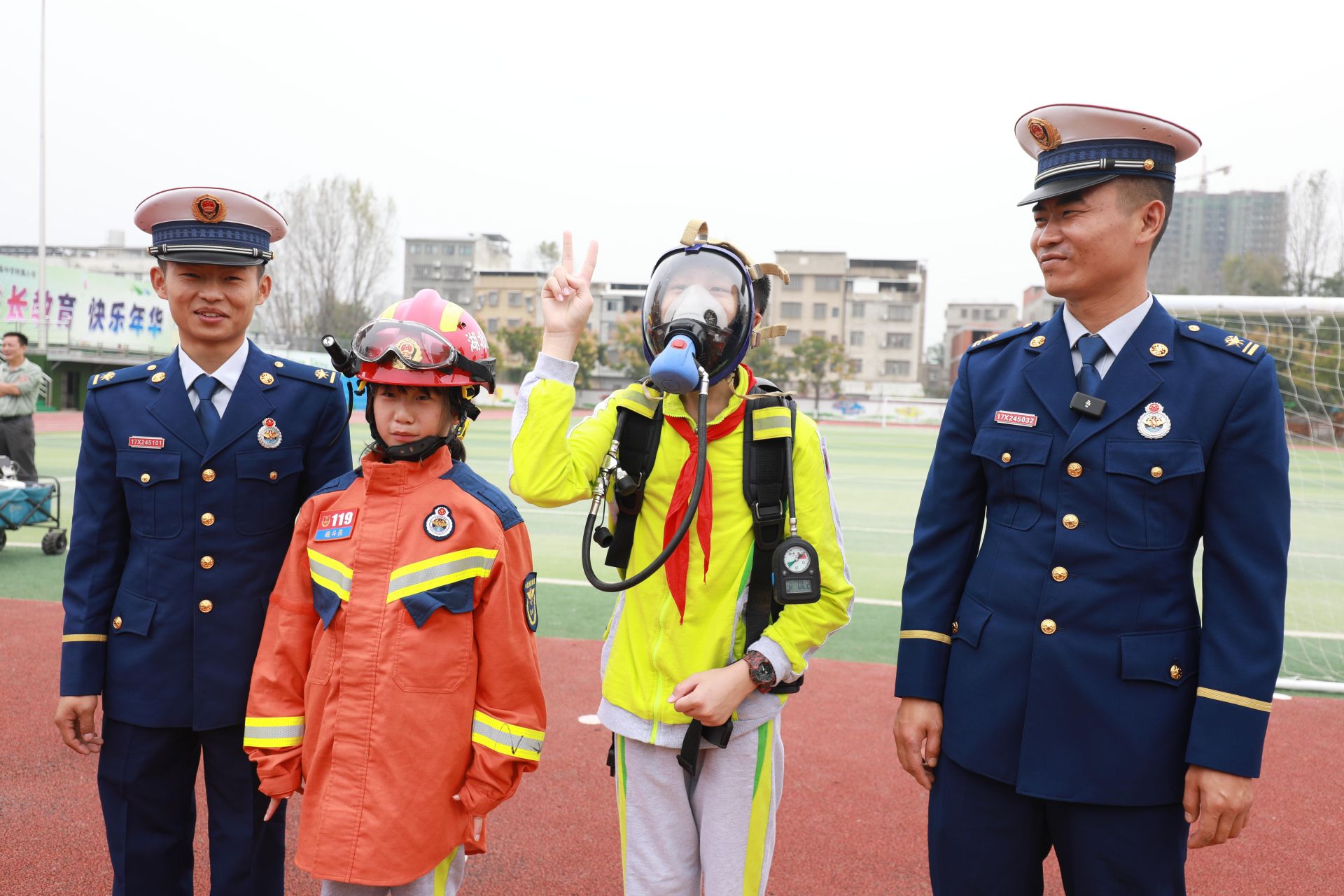 “演練專用煙霧彈被點燃,煙霧迅速彌漫校園,尖厲的警報聲破空而起,廣播提醒全體師生,學校發(fā)生險情,請大家迅速撤離教室樓層。在導引員的指引下,參加演練的師生彎腰捂鼻,低位列隊下樓疏散,快速撤離到校園操場設置的安全區(qū),所有動作從容不迫,有條不紊。”這是天門杭州華泰中學附屬小學火災現(xiàn)場撤離的逃生演練場景。