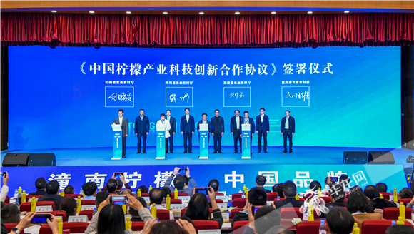《中國檸檬產(chǎn)業(yè)科技創(chuàng)新合作協(xié)議》簽署儀式現(xiàn)場。華龍網(wǎng) 鄧晨曦 攝