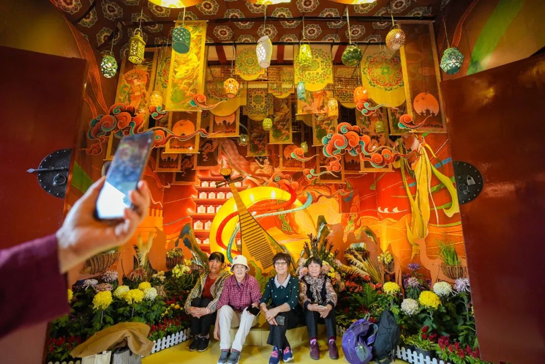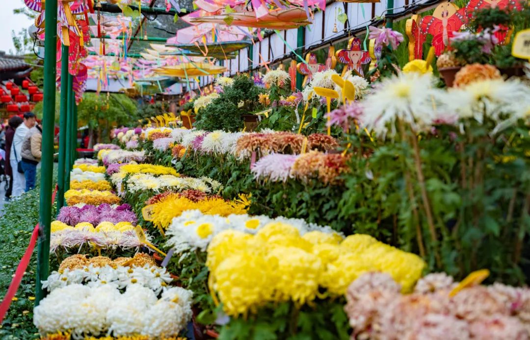 數(shù)百萬株菊花遍布清明上河園。