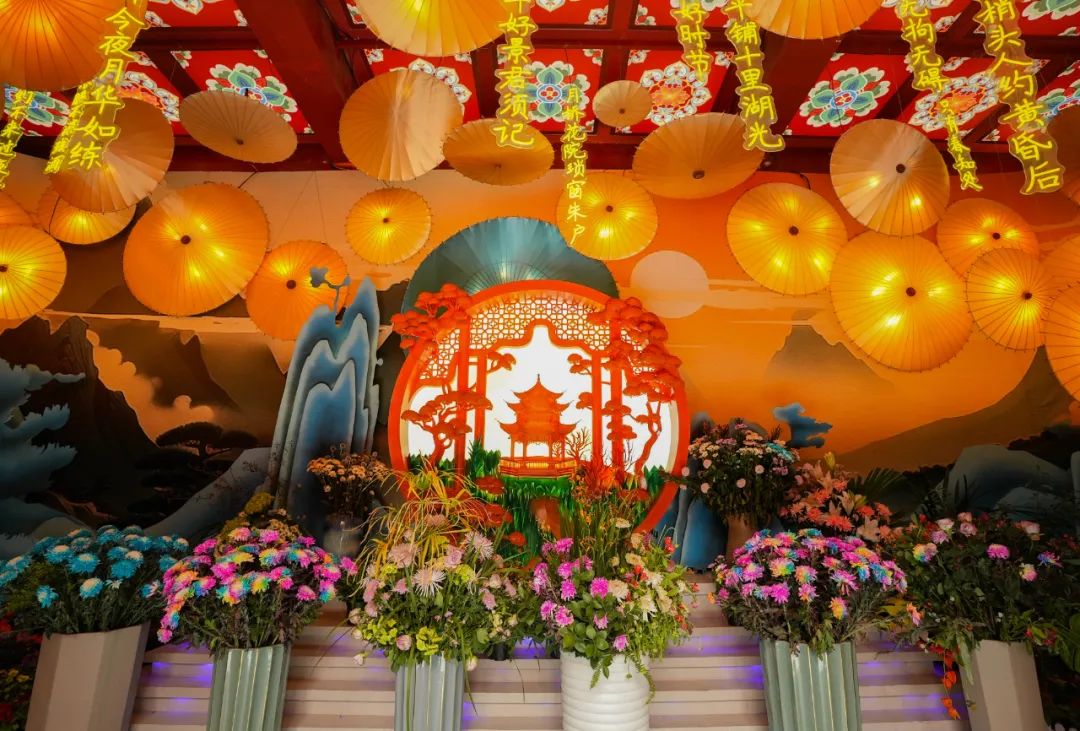 百萬盞花燈與數(shù)萬盆菊花相互映襯,