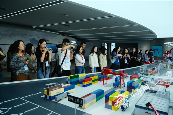 采訪團參訪陸海新通道重慶無水港。華龍網(wǎng) 記者 王慶煉 攝