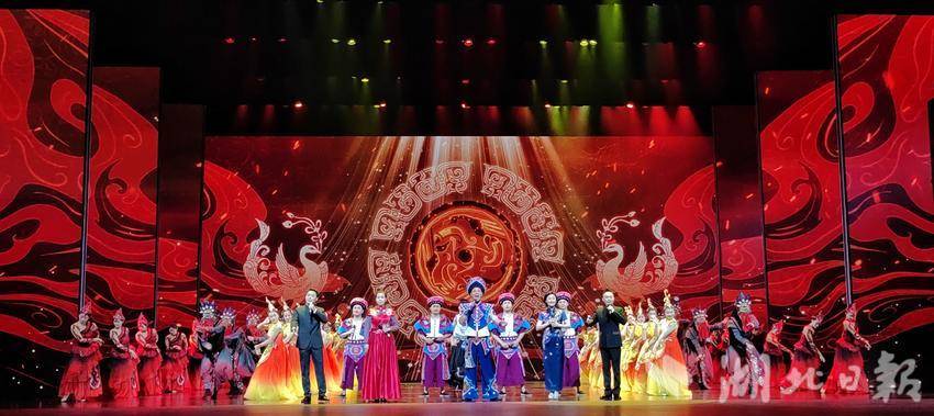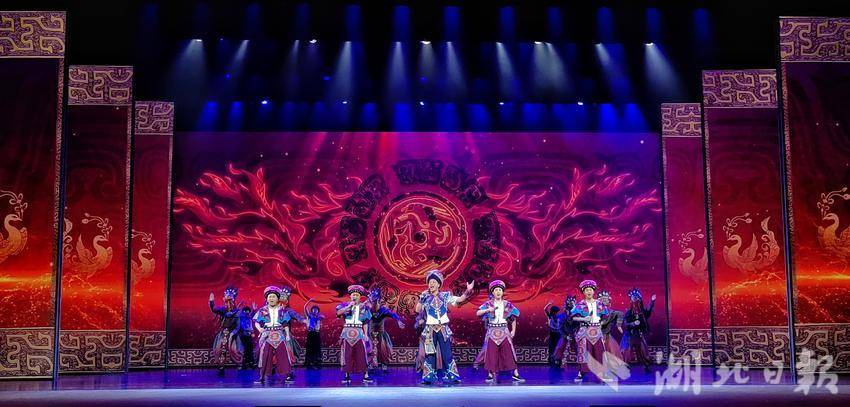 在鄂西的群山碧水間,絢麗多彩的巴楚文化融合相生,飽含土苗風情的原生態(tài)民歌代代相傳。當晚,“土家漢子”組合和獲得湖北省中青年藝術(shù)表演人才大賽的各京劇院團的獲獎選手們共同帶來的歌舞《巴虎楚風》精彩亮相。當京劇攜手原生態(tài)民歌融合創(chuàng)新、當鄂西民歌遇上荊楚國粹,剛?cè)岵?,碰撞出了驚艷的藝術(shù)火花,贏得在場觀眾陣陣掌聲。