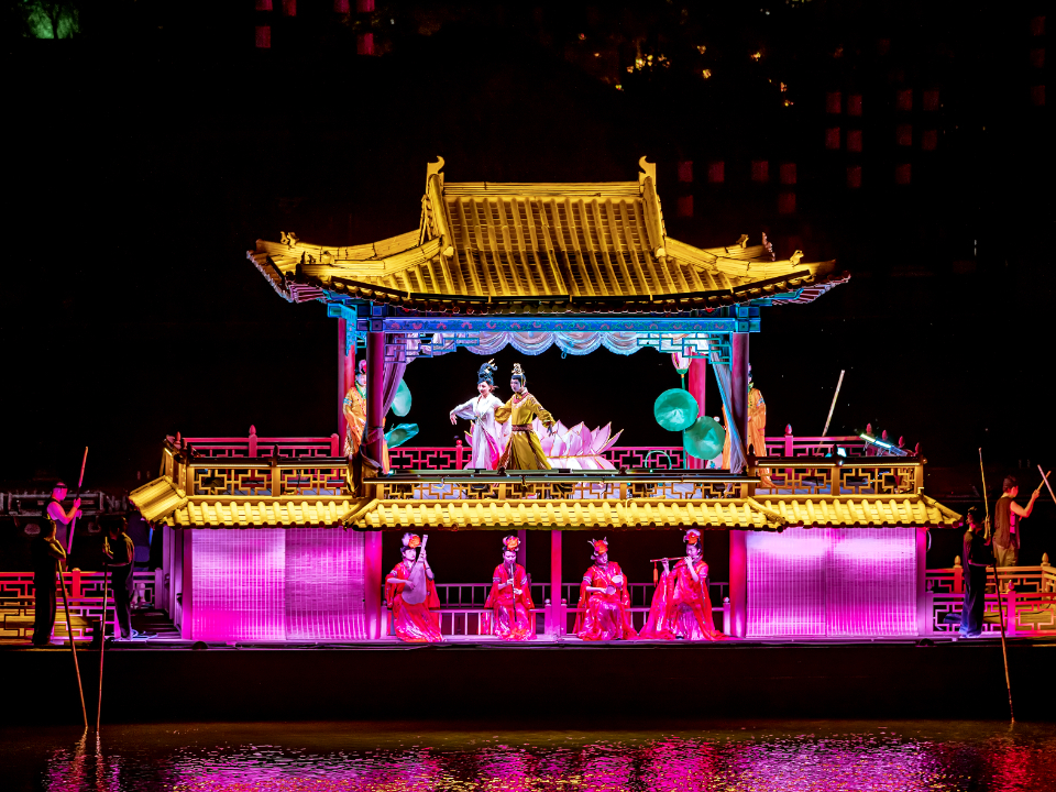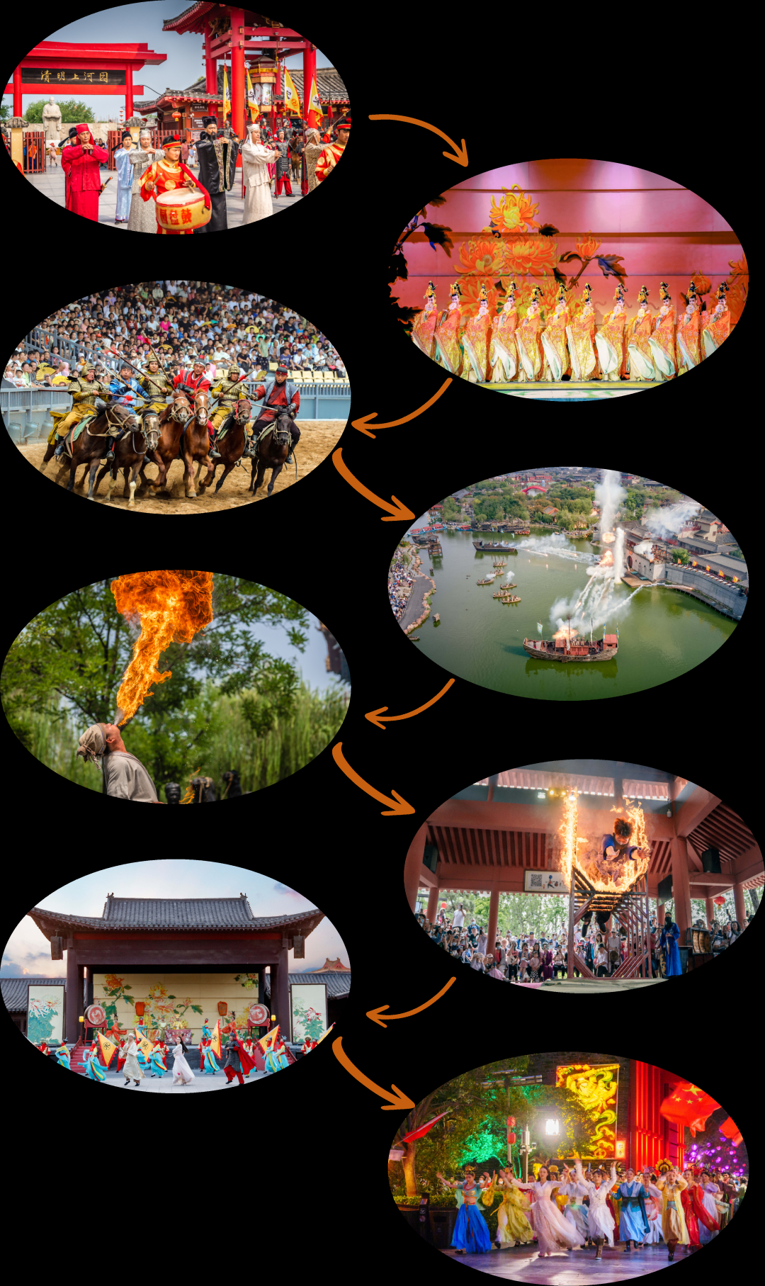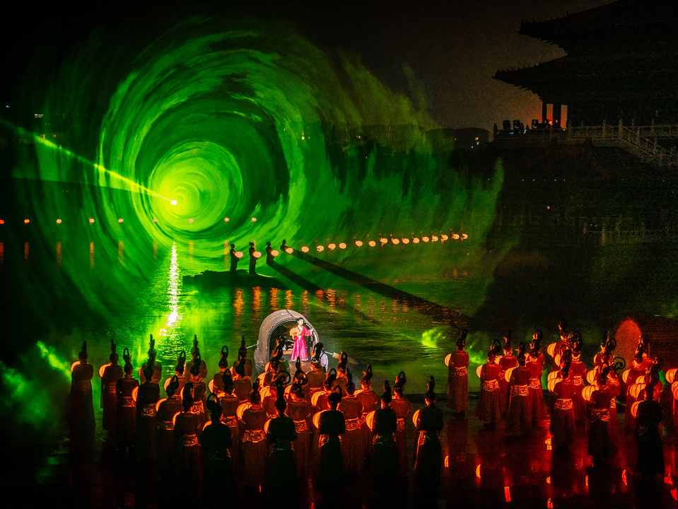 在景龍湖畔凝結(jié)為《大宋·東京夢(mèng)華》實(shí)景演出。