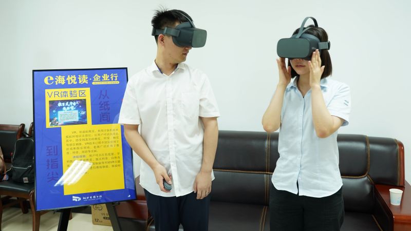 為了豐富資源服務(wù)模式,本次服務(wù)包括數(shù)據(jù)庫推介、VR沉浸體驗(yàn)、游戲互動(dòng)、圖書暢讀及電子借閱證辦理等。在活動(dòng)現(xiàn)場,企業(yè)職工不僅可以通過VR眼鏡帶來的虛擬現(xiàn)實(shí)技術(shù),直觀感受到另類讀法的趣味性;還能在輕松愉快的氛圍中參與“碼上猜書”等互動(dòng)游戲,體驗(yàn)到移動(dòng)閱讀的高效;更有楚天云遞工作人員現(xiàn)場指導(dǎo)大家操作選書下單,享受足不出戶借閱圖書的便利。此外,活動(dòng)還專設(shè)了圖書暢讀區(qū),精選近百本近期大熱的紙質(zhì)圖書,供大家自取取閱,從紙間到指尖,將不同閱讀方式進(jìn)行展示與呼應(yīng),喚起閱讀帶來的樂趣與欣喜。