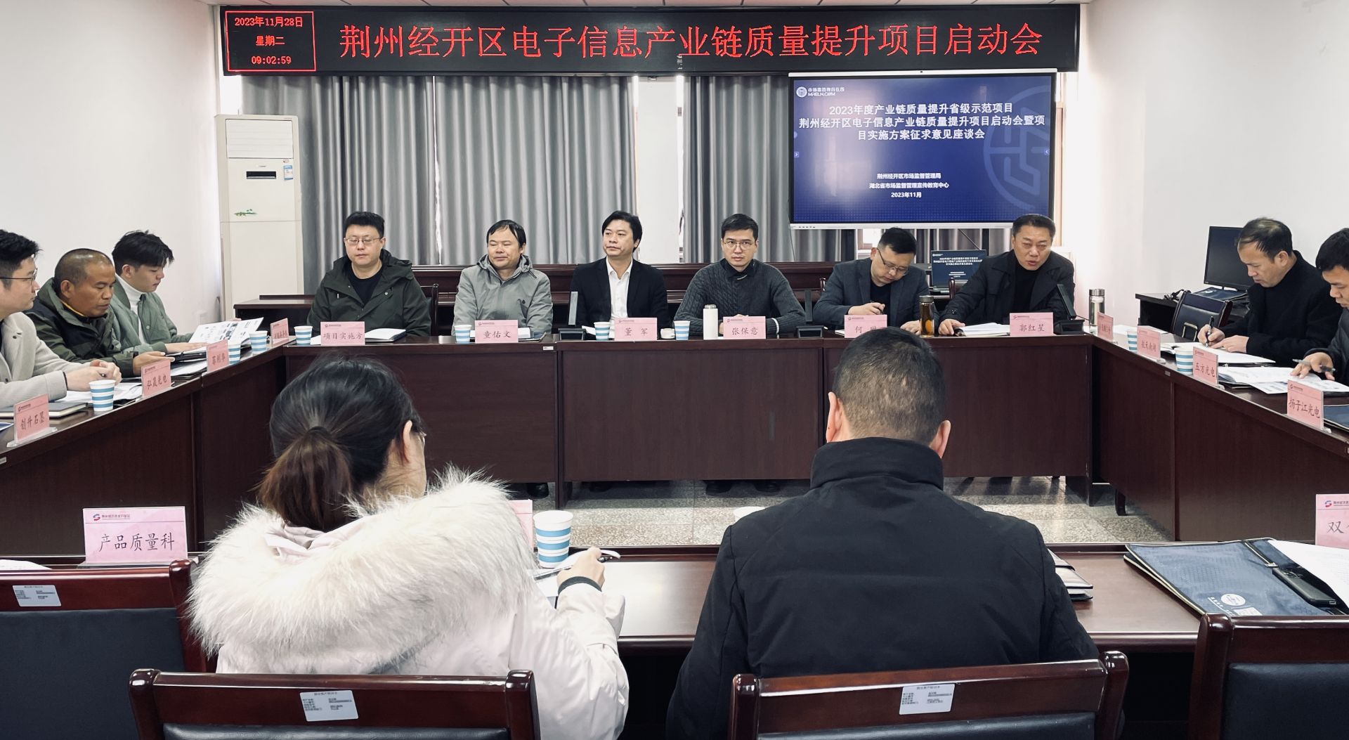 荊楚網(wǎng)(湖北日報(bào)網(wǎng))訊(通訊員高俊雅)11月28日,2023年度產(chǎn)業(yè)鏈質(zhì)量提升省級示范項(xiàng)目——荊州經(jīng)開區(qū)電子信息產(chǎn)業(yè)鏈質(zhì)量提升項(xiàng)目啟動會暨項(xiàng)目實(shí)施方案征求意見座談會在荊州經(jīng)開區(qū)市場監(jiān)管局舉辦,荊州市區(qū)兩級市場監(jiān)管系統(tǒng)有關(guān)領(lǐng)導(dǎo)、荊州經(jīng)開區(qū)管委會有關(guān)部門負(fù)責(zé)人、質(zhì)量提升專家工作組及區(qū)內(nèi)相關(guān)企業(yè)代表30余人參加會議。