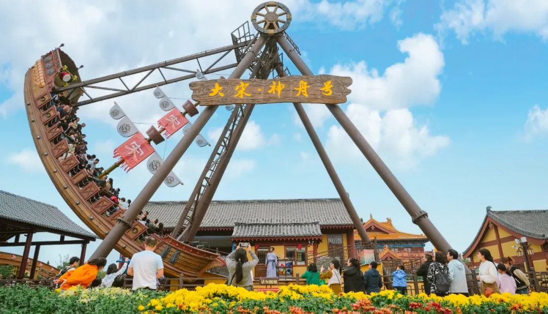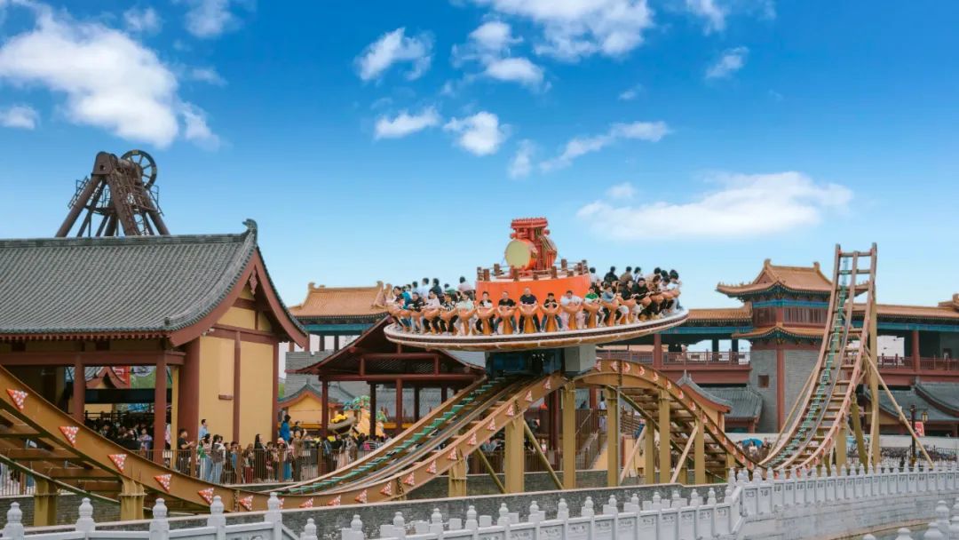 “龍騰鼓舞”游樂設(shè)施,增加了宋代擊鼓元素,伴隨音樂節(jié)奏,動感十足,讓游客擁有騰云駕霧的沉浸體驗。
