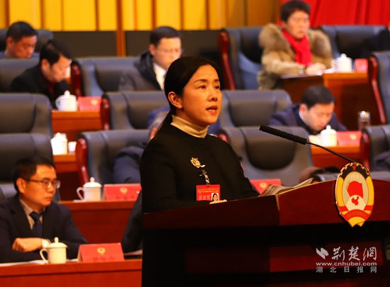 咸安區(qū)政協(xié)主席鎮(zhèn)權(quán)作工作報告。黃錚 攝