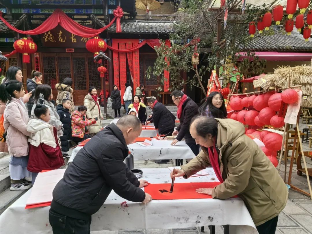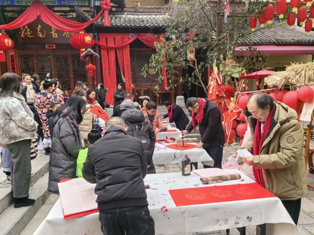 “辰龍送瑞,春聯(lián)送福”。在女兒城非遺劇場門口,免費送春聯(lián)活動準時開始。翰墨飄香迎新春,筆墨濃情送祝福,書法老師們揮毫潑墨、凝神動筆,市民朋友圍成環(huán)裝認真觀賞,一時間紅紙翻飛墨香四溢,一副副充滿吉祥如意祝福的手寫春聯(lián)呈現(xiàn)在人們眼前。