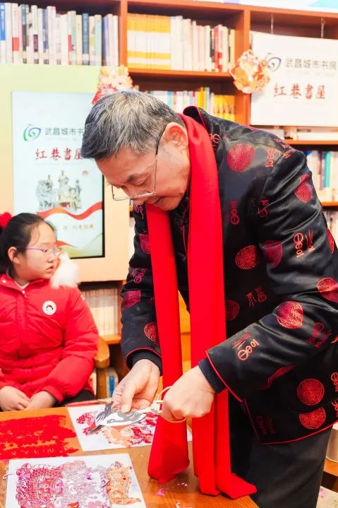 作為年俗區(qū)的常駐嘉賓,沈松柏老師已經(jīng)連續(xù)3年在武漢革命博物館陪伴觀眾過小年了,他說:“我每年剪的窗花樣式在變,但是對(duì)生活的美好祝福始終不變!博物館活動(dòng)的主題、形式每年都在變,但是弘揚(yáng)傳統(tǒng)文化,講好中國(guó)故事的初心從未改變。”
