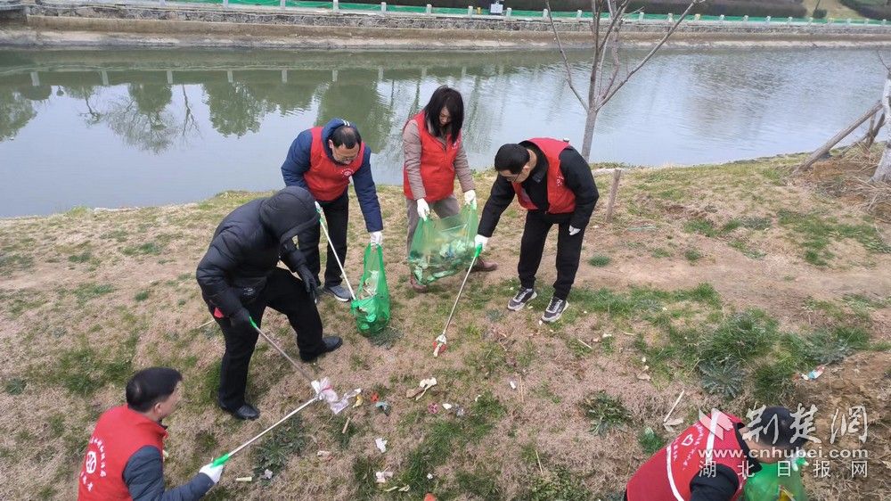3月1日,雪后初晴。該局班子成員帶頭,率領干部職工80人來到城東曲陽河,開展以“云尚花開 德潤夢澤”為主題的志愿清河行動。