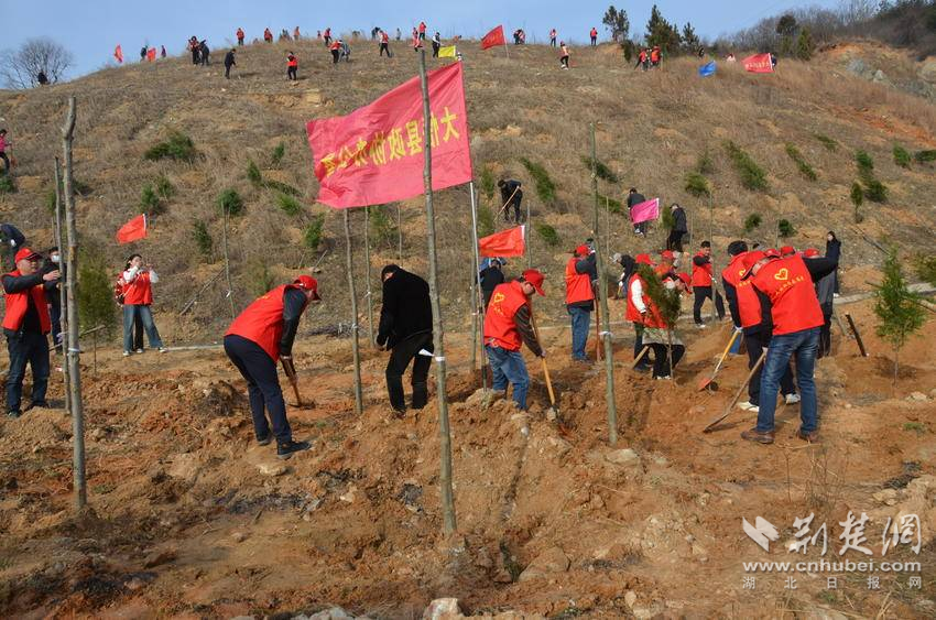 荊楚網(wǎng)(湖北日報網(wǎng))訊(通訊員易榮波 尹熙勝 付瑩瑩 李怡)3月12日,第46個植樹節(jié),在大悟縣陽平工業(yè)園北部荒山上,1800余名縣直各單位志愿者參加義務(wù)植樹活動。