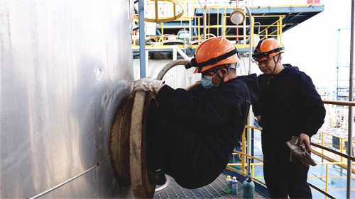 在蜿蜒曲長的管道間,在錯綜復(fù)雜的設(shè)備旁,在罐體聳立的高處,在狹窄逼人的容器里,檢驗(yàn)人員正爭分奪秒、兢兢業(yè)業(yè)開展檢驗(yàn)工作。檢驗(yàn)人員嚴(yán)格依據(jù)相關(guān)法律法規(guī)、安全技術(shù)規(guī)范及相關(guān)標(biāo)準(zhǔn),從資料審查、設(shè)備本體及運(yùn)行狀況、安全附件、壁厚檢測等項(xiàng)目逐一進(jìn)行檢查,確保檢驗(yàn)工作不留死角。對于檢驗(yàn)中發(fā)現(xiàn)的問題,檢驗(yàn)人員及時向企業(yè)反饋,幫助企業(yè)整改,直至隱患消除。
