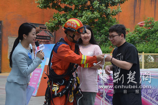 武漢市東西湖區(qū)吳家山消防救援站政治指導員周道詳細講解了公共聚集場所防踩踏安全知識?!鞍l(fā)覺擁擠時,應該立馬避到一旁,一旦進入人群,不要停下或逆行,更要保持情緒穩(wěn)定……”在歡樂谷微型消防站,周道還展示了滅火器的正確使用方法。