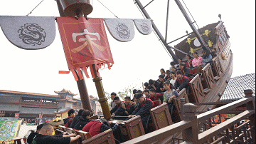 “神舟出?!庇螛讽?xiàng)目:復(fù)原了大宋官方使臣出使海外國家的“神舟”,你可乘坐“大宋·神舟號(hào)”與大宋使臣一起揚(yáng)帆起航、乘風(fēng)破浪!