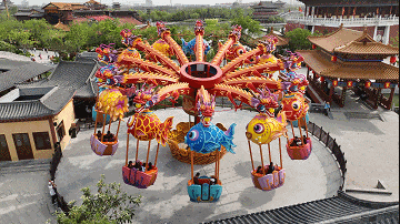 “鳳舞九天”游樂項(xiàng)目:座艙在360°公轉(zhuǎn)的同時(shí)又有規(guī)律地偏心旋轉(zhuǎn),讓游客擁有如鳳凰飛翔般的非凡體驗(yàn)。