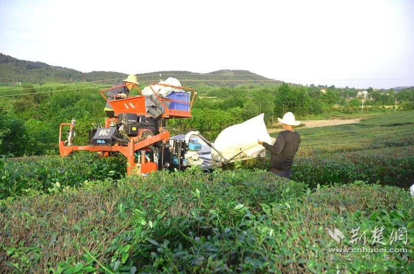 荊楚網(wǎng)(湖北日報(bào)網(wǎng))訊(通訊員 易榮波、石小清、李怡)近日,記者走進(jìn)大悟縣河口鎮(zhèn)金墩村湖北半兵衛(wèi)茶業(yè)有限公司茶園,只見一派忙碌的景象,采茶機(jī)正在茶園往來穿梭,工人正將剛剛采摘的新鮮茶葉裝運(yùn)進(jìn)廠。