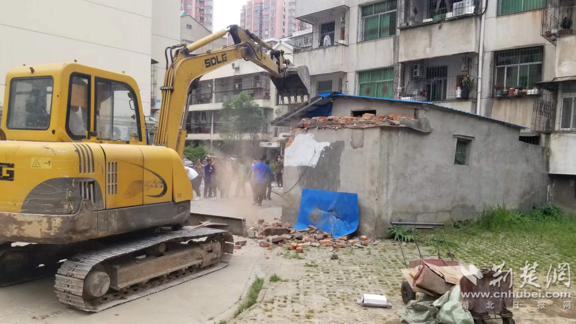荊楚網(wǎng)(湖北日報網(wǎng))訊 (通訊員 李明埜 黃星 陳建軍)“終于拆了,小區(qū)通道直接一把打通了!”小區(qū)王大爺高興的拍手叫好。5月10日,在孝感市云夢縣工藝小區(qū)居民樓前,一臺挖掘機正在拆除違建物,一面圍墻在數(shù)位居民的見證下轟然倒塌,大家一邊看一邊議論著。