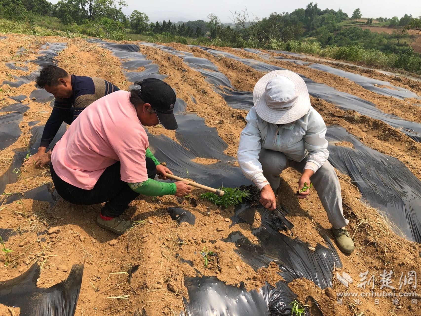 “栽種前要先打好壟,覆蓋好塑料薄膜,辣椒苗不能栽種太深、壓得太緊,子葉一定要留在外面,移栽好后要用細(xì)土封口,這樣才利于辣椒的生長(zhǎng)……”正在現(xiàn)場(chǎng)指導(dǎo)辣椒移栽的北河村黨支部書(shū)記黃嬌一邊講解一邊示范操作。