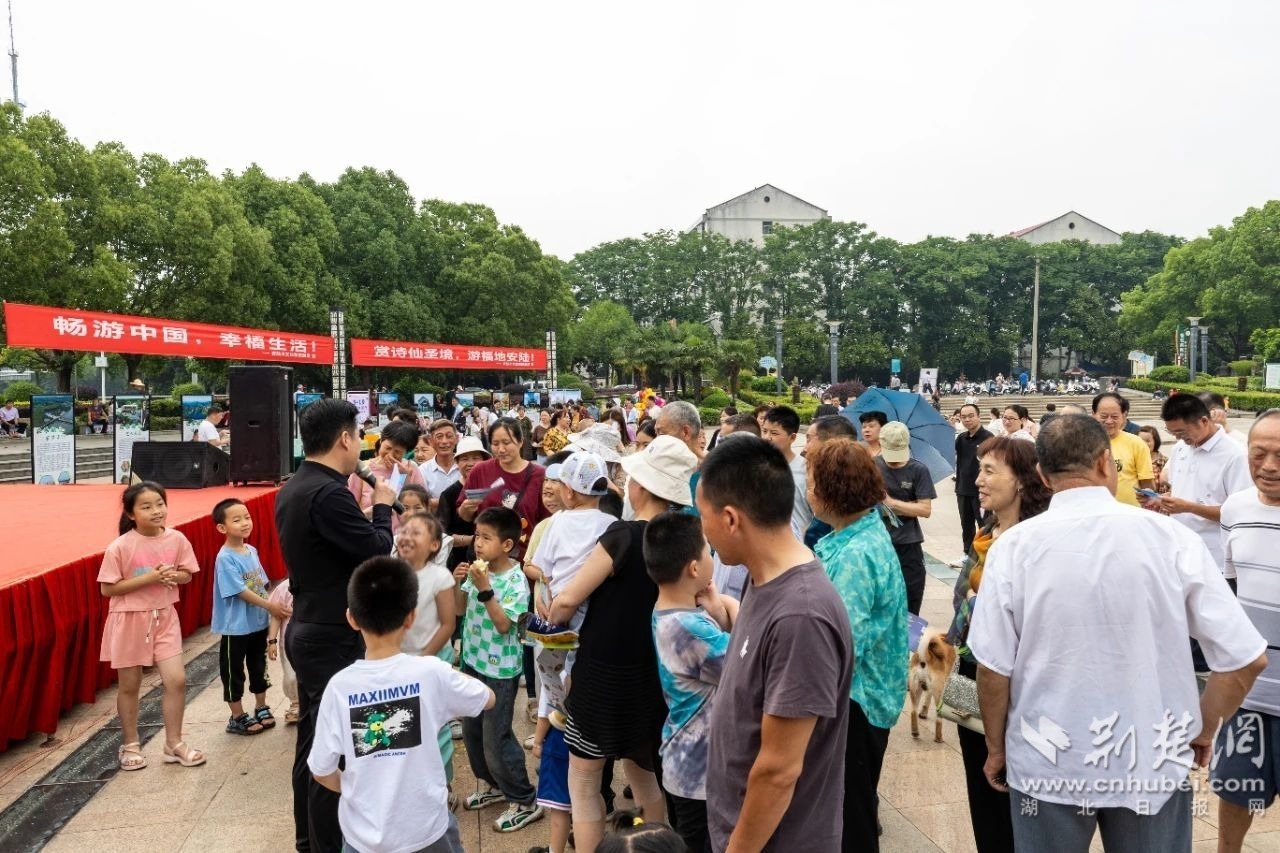 上午9點(diǎn),2024年安陸市“5·19中國旅游日”開幕式在該市河濱公園舉行。舞蹈《盛世中華舞起來》、琵琶獨(dú)奏《十面埋伏》、李白詩朗誦等精彩節(jié)目輪番上演,現(xiàn)場還設(shè)有互動問答環(huán)節(jié),將現(xiàn)場氛圍一再推向高潮,讓游客們對各個安陸景區(qū)充滿期待。