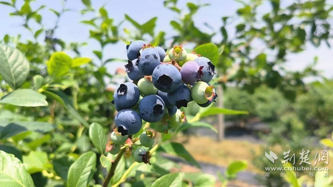 5月17日上午,在孝昌縣衛(wèi)店鎮(zhèn)佳地藍莓家庭農(nóng)場,只見半人高的藍莓樹排列整齊,飽滿多汁的藍莓果掛滿枝頭,成熟的紫色果實在陽光的照耀下格外搶眼。