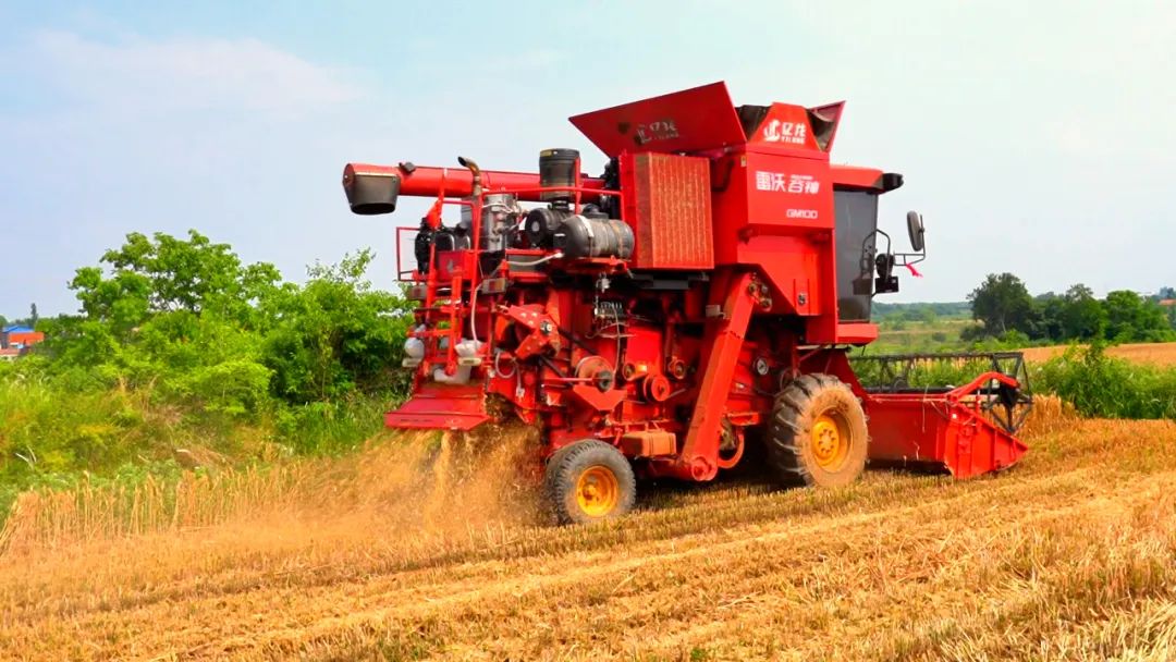 “8臺大型機械同時收割,每天預計收割200畝,省時又省力?!毙⒉h鄒崗鎮(zhèn)興峰農(nóng)業(yè)有限公司負責人楊仙華說。