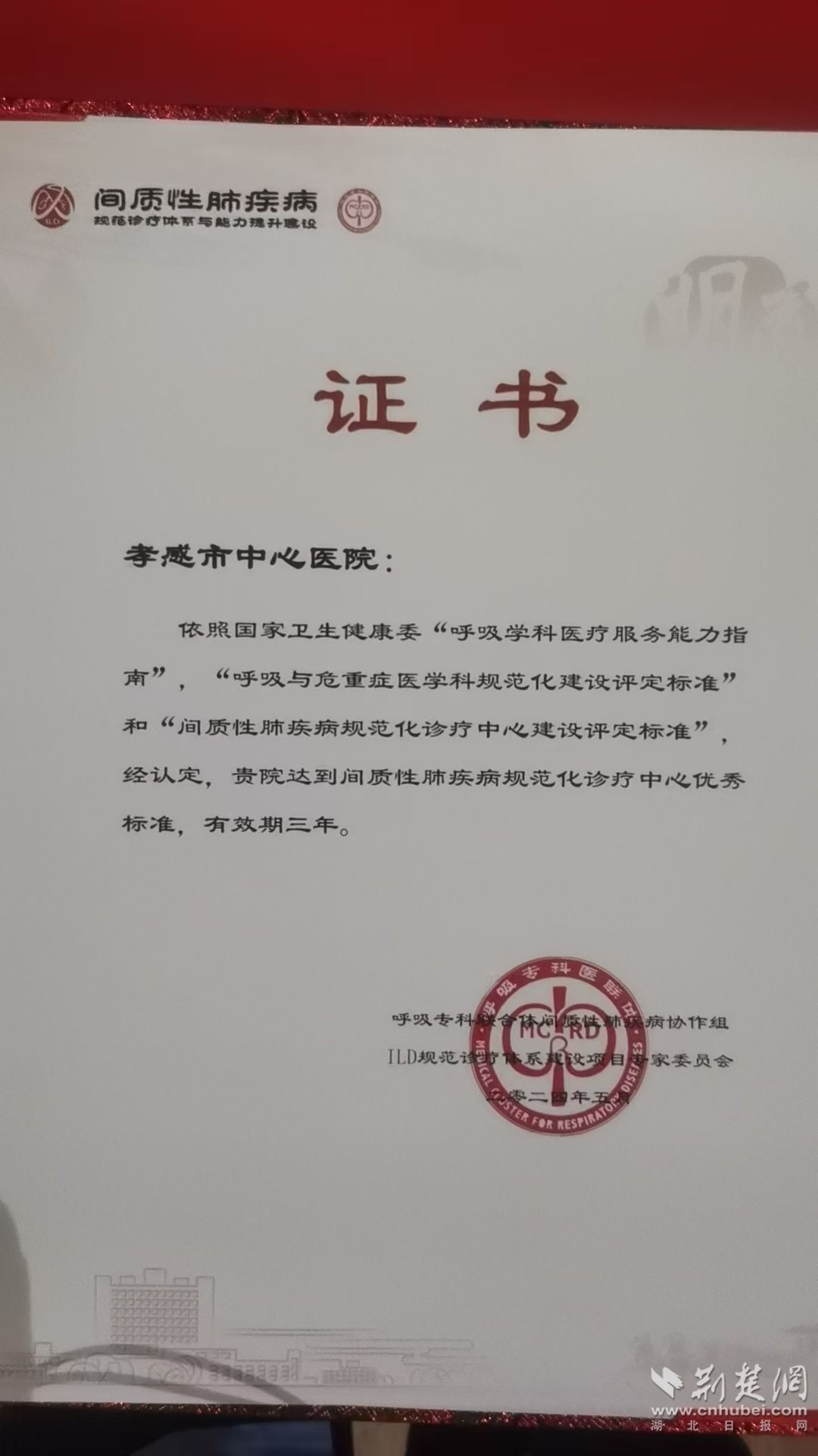 荊楚網(wǎng)(湖北日報網(wǎng))訊(通訊員管菊艷 劉桂霞)5月25日,中國間質(zhì)性肺疾病(ILD)規(guī)范診療中心認定授牌大會在北京國家呼吸醫(yī)學(xué)中心舉行,孝感市中心醫(yī)院獲評全國“間質(zhì)性肺疾病規(guī)范診療中心建設(shè)”優(yōu)秀單位。
