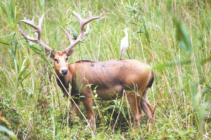 【名片】麋鹿是中國(guó)特有物種,為國(guó)家一級(jí)重點(diǎn)保護(hù)野生動(dòng)物,被列入《世界自然保護(hù)聯(lián)盟瀕危物種紅色名錄》。