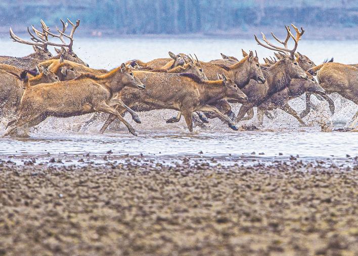 麋鹿在保護(hù)區(qū)內(nèi)奔跑。