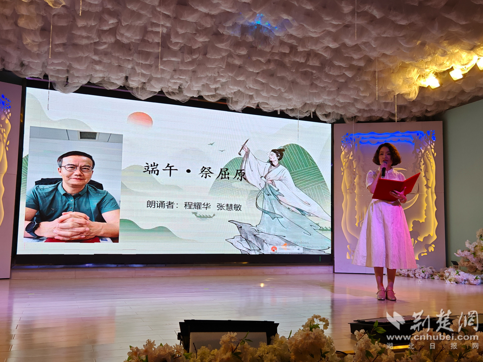 端午也是懷古思鄉(xiāng)的時(shí)節(jié)?;顒?dòng)現(xiàn)場(chǎng),廣州的云夢(mèng)籍老鄉(xiāng)、廣東廣播電視臺(tái)資深新聞節(jié)目主持人、第十屆廣東新聞金話筒獎(jiǎng)獲獎(jiǎng)?wù)叱桃A隔空與云夢(mèng)縣朗協(xié)秘書(shū)長(zhǎng)張慧敏千里相隔、同屏共同演繹《端午 祭屈原》。端午傳情,粵、鄂隔空連線同屏誦經(jīng)典,觀眾細(xì)聽(tīng)慢品,引起大家共鳴,博得陣陣掌聲。聽(tīng)眾陳芳說(shuō):“今天太享受了,很震撼呀!耳朵和眼睛都醉了!”另一觀眾也說(shuō):“太享受了,朗誦者把我們帶入遙遠(yuǎn)的年代,帶入情景交融的美妙世界,真是讓人陶醉!”