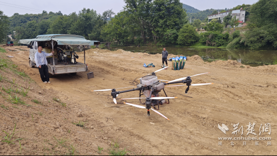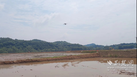 荊楚網(wǎng)(湖北日?qǐng)?bào)網(wǎng))訊(通訊員 馬久勝)6月5日,在孝感市大悟縣宣化店鎮(zhèn)蓮塘村150余畝的占補(bǔ)平衡“旱改水”項(xiàng)目現(xiàn)場(chǎng),農(nóng)用無人機(jī)正攜帶著種子和肥料在農(nóng)田上空來回穿梭,田中還有兩臺(tái)挖機(jī)和一臺(tái)旋耕機(jī)同步進(jìn)行整田作業(yè)。