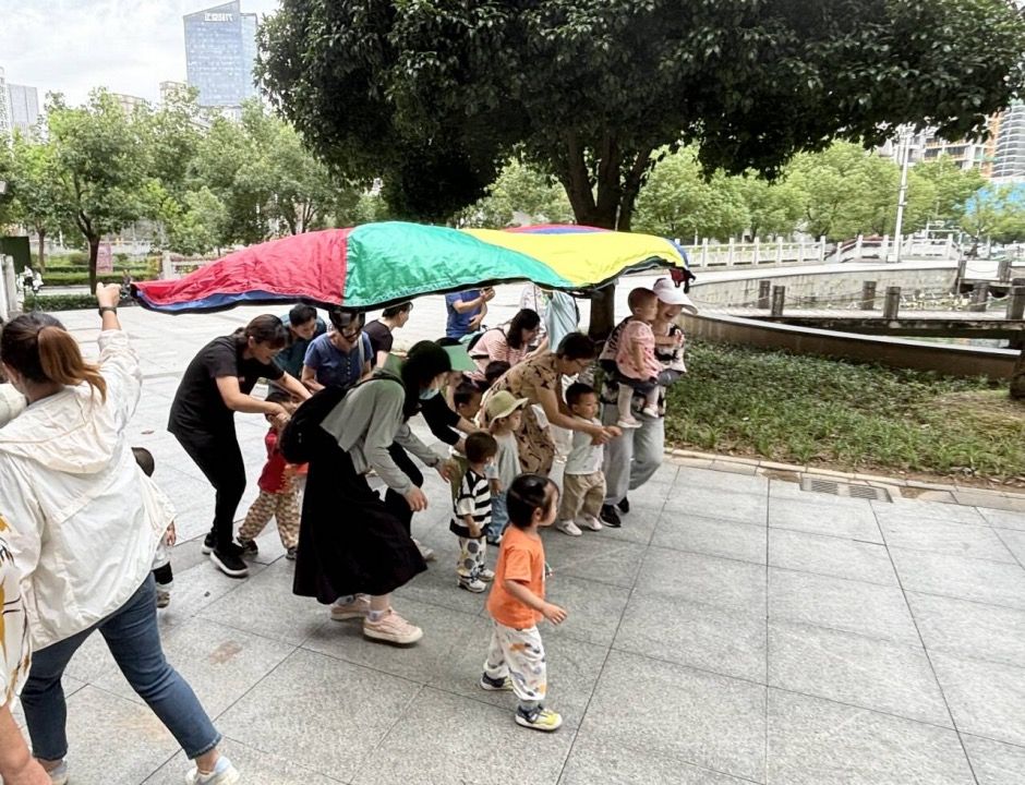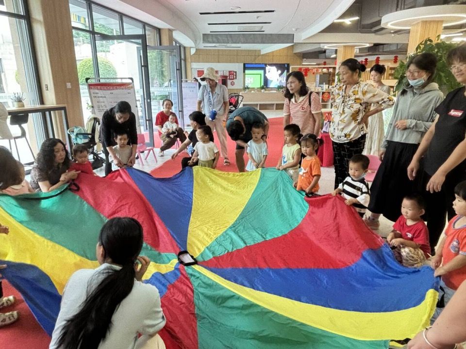 隨后的游戲環(huán)節(jié)形式多樣、內(nèi)容豐富,在指導(dǎo)老師生動形象的演示下,小朋友們專注投入到“模式過河”“一座小橋平地起”等游戲中,孩子們認(rèn)真觀察、用心體驗,沉浸在童趣與幻想空間中。在親子游戲“捕魚達人”環(huán)節(jié),指導(dǎo)老師動員家長參與其中,共同完成游戲任務(wù),與小朋友們一同成長互動,感受幸福與滿足。參與此次活動的社區(qū)居民連連稱贊,表示此次活動不僅幫助家長們建立了科學(xué)托育理念,也增進了親子關(guān)系。