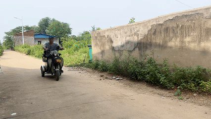 池漢橋騎著電動(dòng)代步車出行。