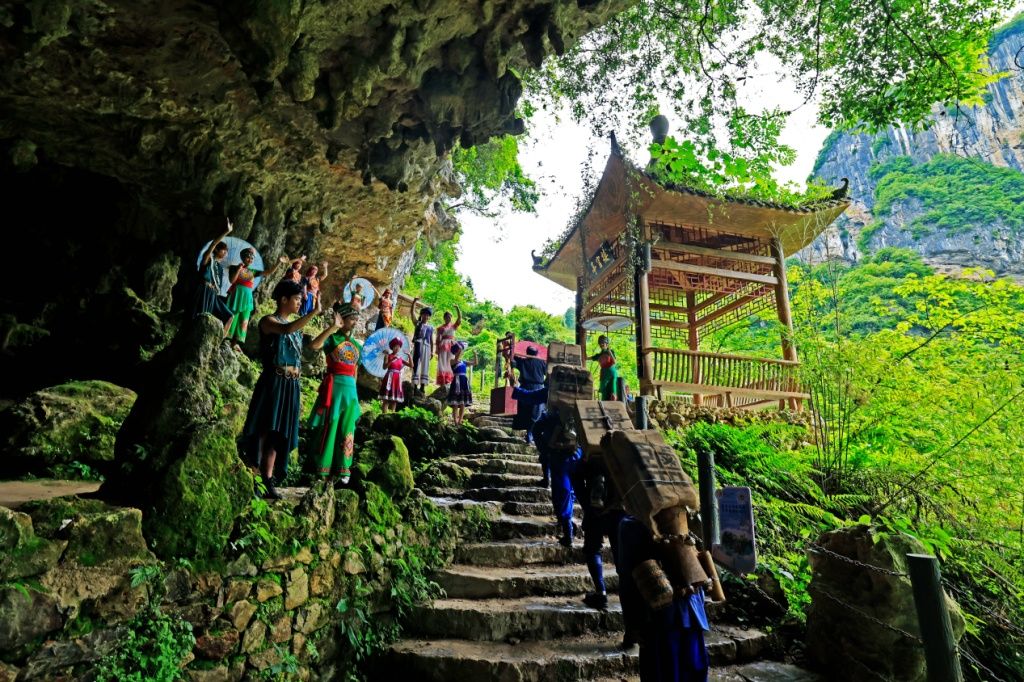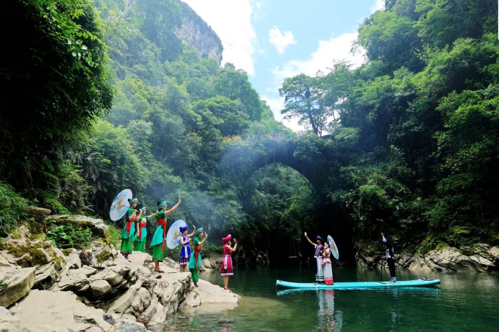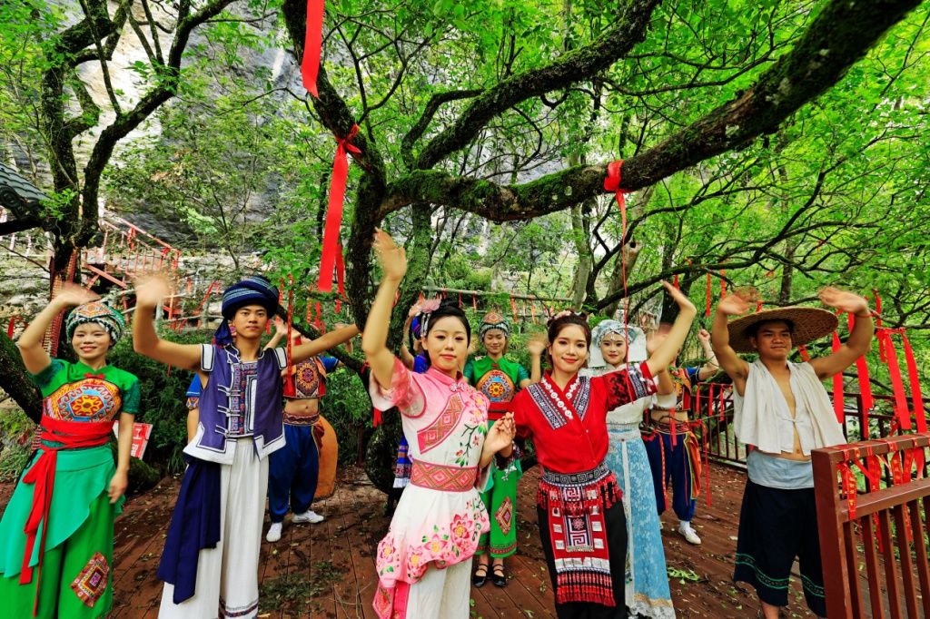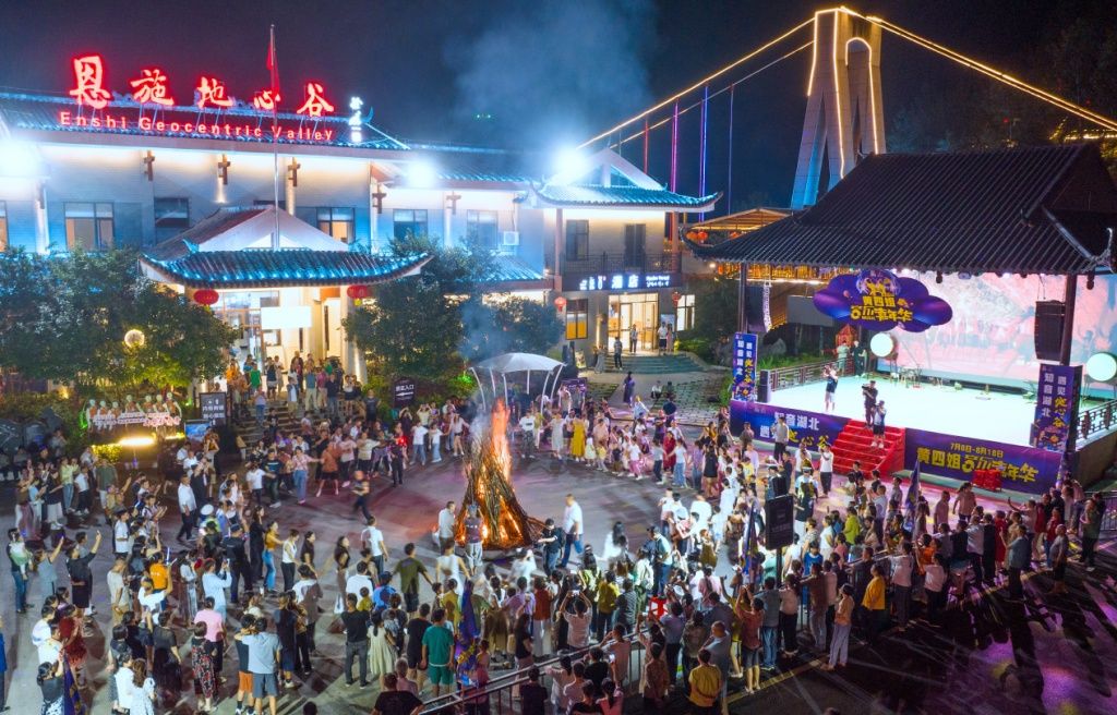體驗(yàn)人文,與浪漫相擁。直至8月18日,景區(qū)舉辦的“知音湖北 遇見(jiàn)地心谷——‘黃四姐’音樂(lè)嘉年華”活動(dòng)將每晚與游客相見(jiàn)?;顒?dòng)期間,來(lái)此游玩的旅客可以在崖舍舞臺(tái)欣賞到以“黃四姐”文化為核心的一系列原創(chuàng)及改編的音樂(lè)作品,如《黃四姐》《地心之戀》等,在感受民族傳統(tǒng)音樂(lè)與民間文化獨(dú)特魅力的同時(shí),化身愛(ài)情故事的主人公,沉醉于唯美動(dòng)人的土家風(fēng)情。