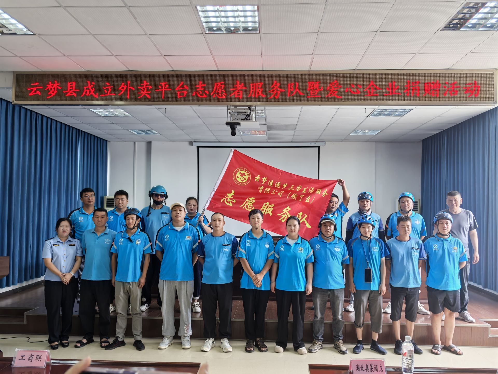 活動(dòng)現(xiàn)場(chǎng),由管理者和優(yōu)秀騎手組成“湖北齊夢(mèng)快餐配送有限公司(美團(tuán))志愿服務(wù)隊(duì)”和“云夢(mèng)追逐夢(mèng)三國生活服務(wù)有限公司(餓了么)志愿服務(wù)隊(duì)”正式成立并宣誓;縣市場(chǎng)監(jiān)管局和湖北奧萊酒店管理有限公司、云夢(mèng)縣臻品神舟西餐廳兩家愛心企業(yè)共同向志愿隊(duì)贈(zèng)送“愛心大禮包”。