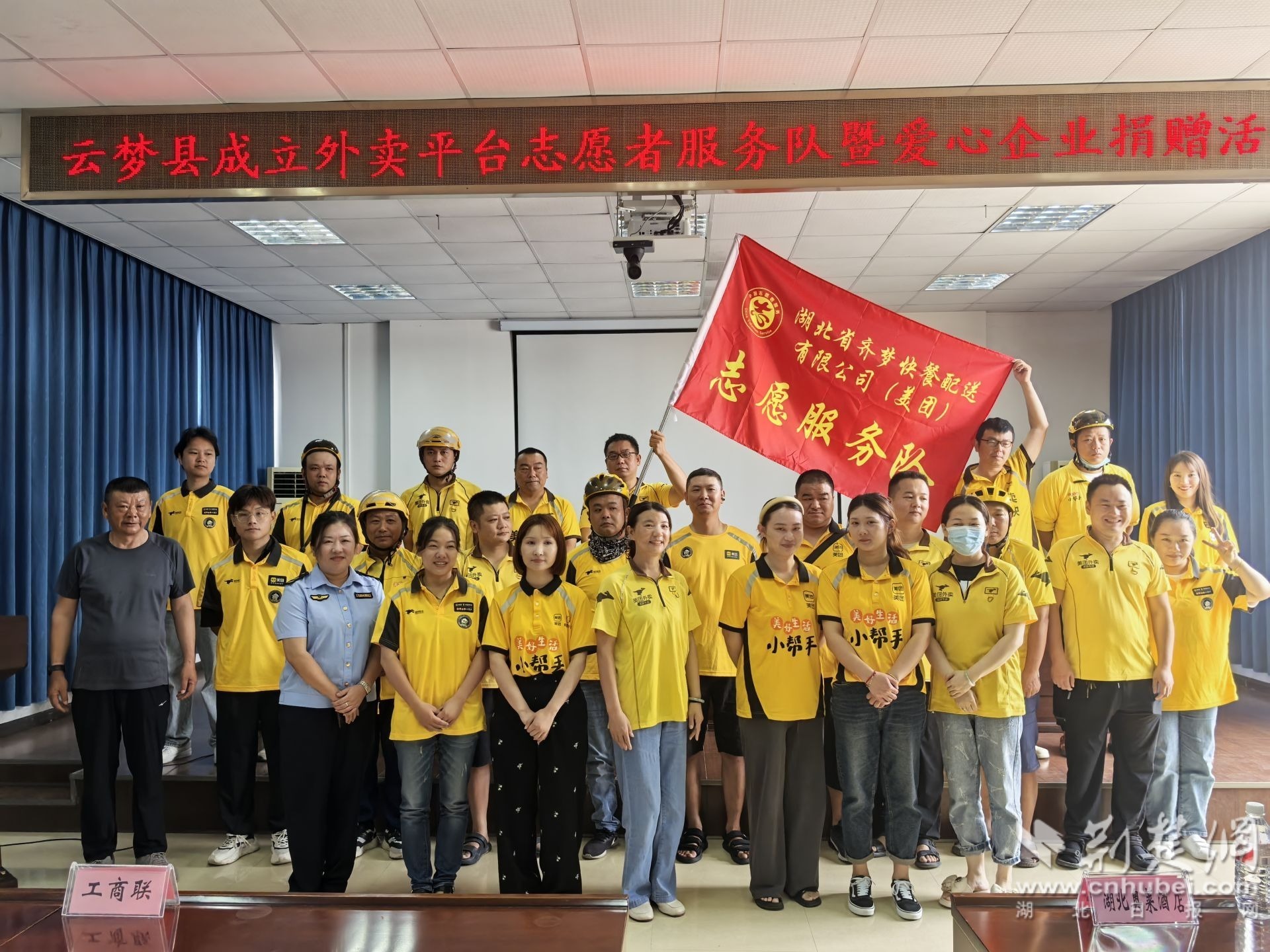 荊楚網(wǎng)(湖北日?qǐng)?bào)網(wǎng))訊(通訊員 胡慶玉 周四強(qiáng))7月16日,云夢(mèng)縣外賣平臺(tái)志愿服務(wù)隊(duì)成立暨愛心企業(yè)捐贈(zèng)活動(dòng)在縣市場(chǎng)監(jiān)管局舉行,縣委組織部副部長(zhǎng)李新進(jìn),縣委社工部副部長(zhǎng)冷軍利,縣工商聯(lián)主席王景,縣市場(chǎng)監(jiān)管局黨組書記、局長(zhǎng)程漢軍出席并向志愿隊(duì)授旗,縣內(nèi)2家愛心企業(yè)和美團(tuán)、餓了么外賣平臺(tái)40余名騎手參加活動(dòng)。