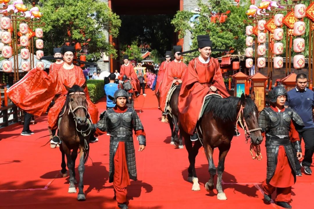 “準新人”可攜帶雙方父母4人、伴郎1人、伴娘1人、化妝師1人免費入園參與活動,可在活動當天免費享受由景區(qū)精心籌備的大宋喜宴。