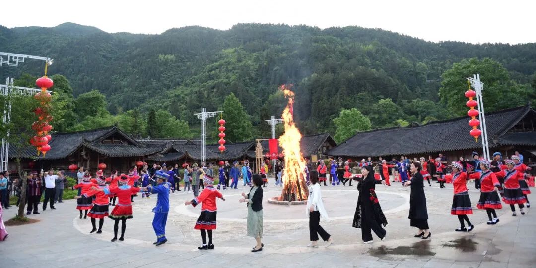 清江河畔,群山如黛,好一幅美麗的山水畫卷;吊腳樓前,院壩稻場,好一場熱鬧的篝火晚會。