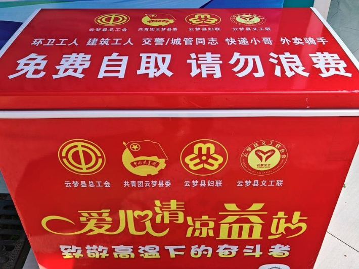 為感謝他們的付出,同時(shí)把清涼分享給更多人,云夢(mèng)縣愛(ài)心人士及達(dá)人秀工作室專(zhuān)門(mén)準(zhǔn)備了冰箱及冰水,為戶(hù)外勞動(dòng)者消暑解熱。