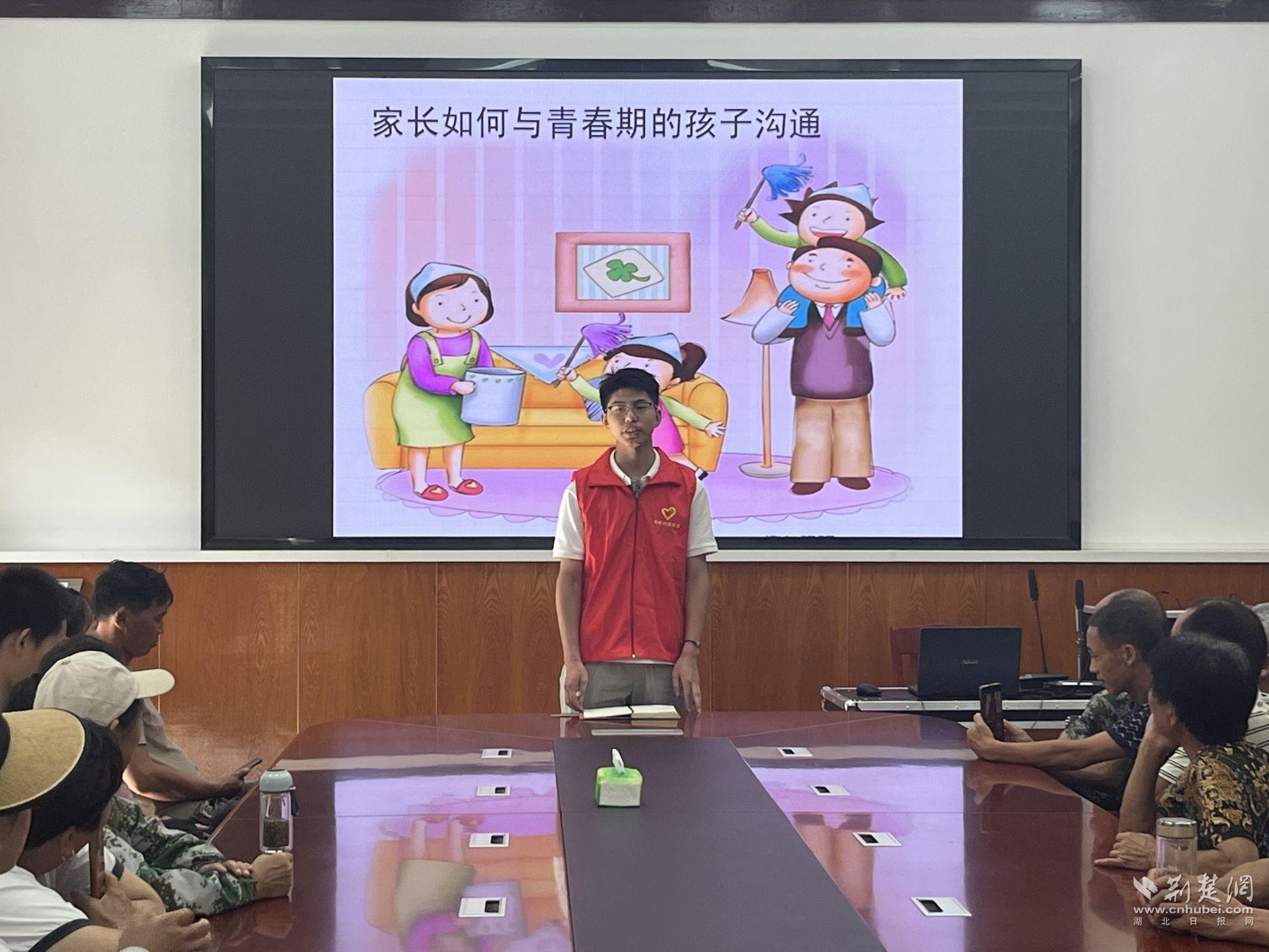 “家長(zhǎng)在與孩子交流時(shí)一定要注意技巧,不要把孩子同他人進(jìn)行比較……”在金嶺村新時(shí)代文明實(shí)踐站內(nèi),大別山支教團(tuán)志愿者以“家長(zhǎng)如何與青春期的孩子溝通”為主題,從溝通方式、心理需求等方面,為20余名學(xué)生家長(zhǎng)傳授與孩子的溝通技巧,并答疑解惑。課堂上,今年剛考上清華大學(xué)的大悟縣本地學(xué)生周佳輝和家長(zhǎng)們分享了自己的學(xué)習(xí)經(jīng)驗(yàn)和與父母的溝通方式?!澳芎痛髣e山支教團(tuán)老師們一起與家長(zhǎng)、孩子們分享交流,我感到非常榮幸。明年暑假我也想報(bào)名參加大別山支教團(tuán),為家鄉(xiāng)的孩子們貢獻(xiàn)自己的一份力量?!敝芗演x說道。