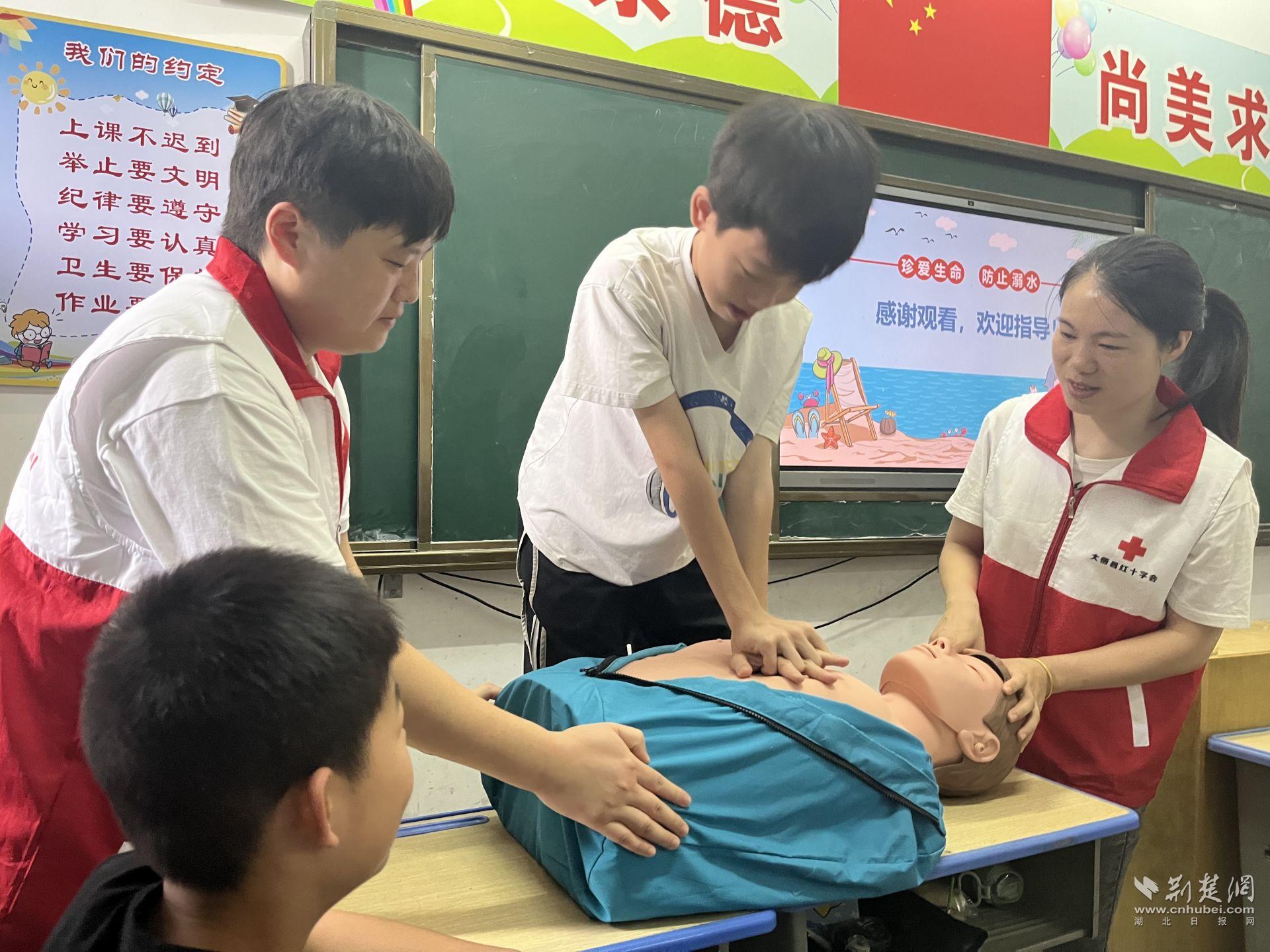 “我們?cè)谡n堂上學(xué)到了不要私自下河游泳,不要結(jié)伴去游泳,還學(xué)習(xí)了人工呼吸、心臟按壓等急救措施,以后如果小伙伴們遇到這種事,我會(huì)運(yùn)用這些急救知識(shí)去幫助他們?!毙鲁擎?zhèn)七年級(jí)學(xué)生顏錦說道。
