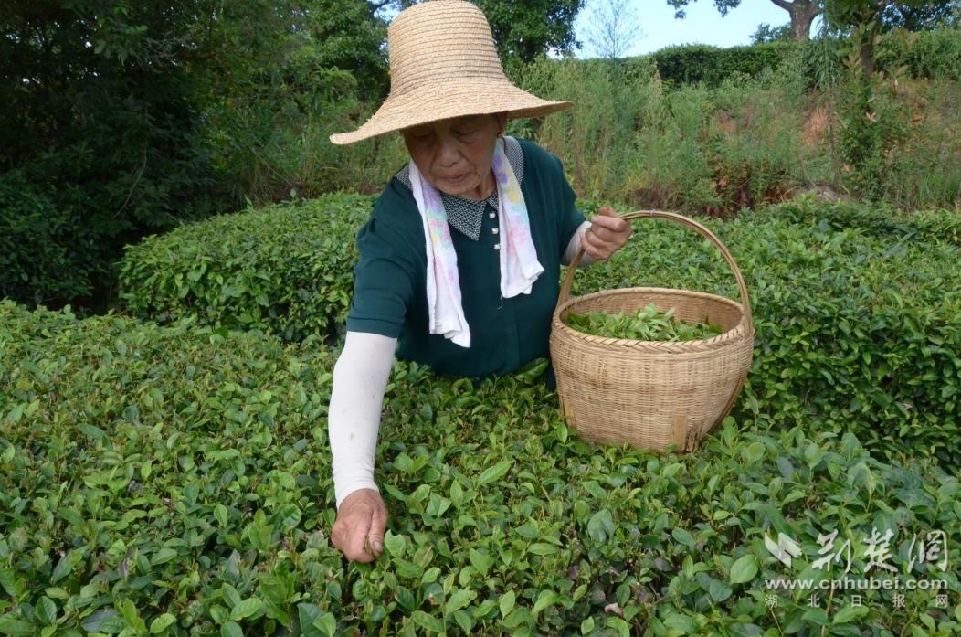 “每天可以采摘二十多斤,6元一斤,一天收入一百多元,今年夏茶已經(jīng)收入四千多元?!蓖鯙炒遴國P榮婆婆趁著早上的清涼正在茶園里采收茶葉。
