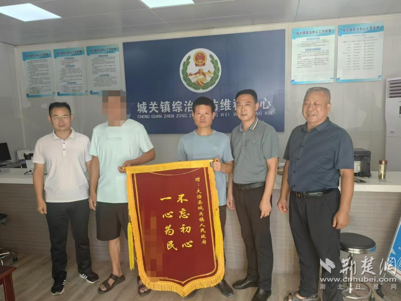 荊楚網(湖北日報網)訊(通訊員 劉陽)8月13日,大悟縣城關鎮(zhèn)中心村村民胡某和家屬將一面印有“不忘初心,一心為民”的錦旗送到鎮(zhèn)政府干部手中,感謝社會各界幫助尋回離家出走的女兒。