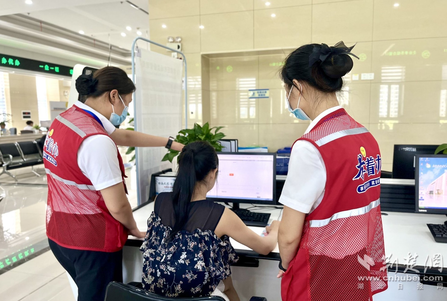 微笑幫辦人員正幫助來辦事人員操作。記者黃菲 攝