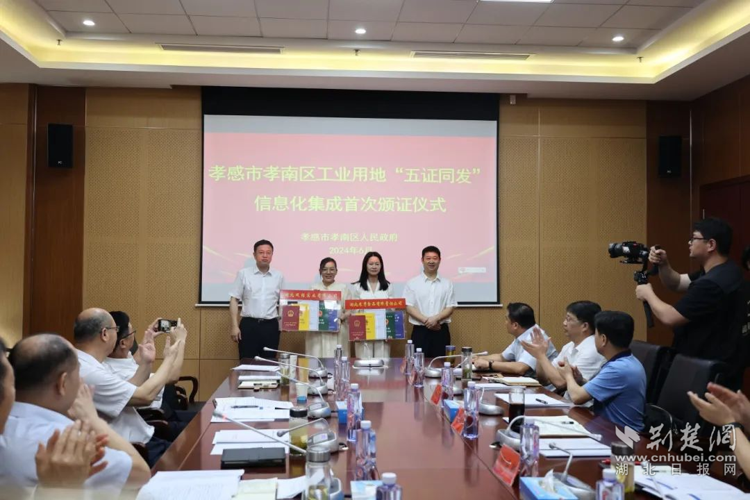 在6月18日,全省首批信息化集成辦理工業(yè)用地“五證”在孝南區(qū)頒發(fā)。本次頒發(fā)的“五證”通過“一網(wǎng)集成”全程網(wǎng)辦生成,標(biāo)志著孝南“五證同發(fā)119”全新模式(1個窗口受理、1個工作日辦結(jié)、9份申報(bào)材料)正式上線運(yùn)行。