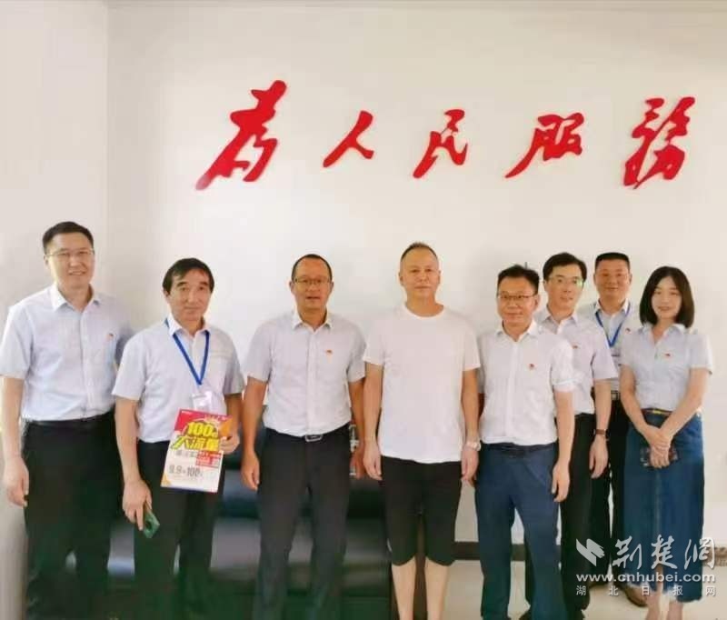 周愛(ài)國(guó)(左四)與來(lái)長(zhǎng)周村考察的孝感市電信公司一行合影。