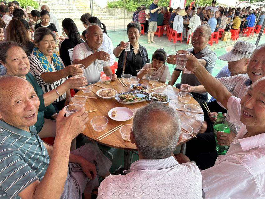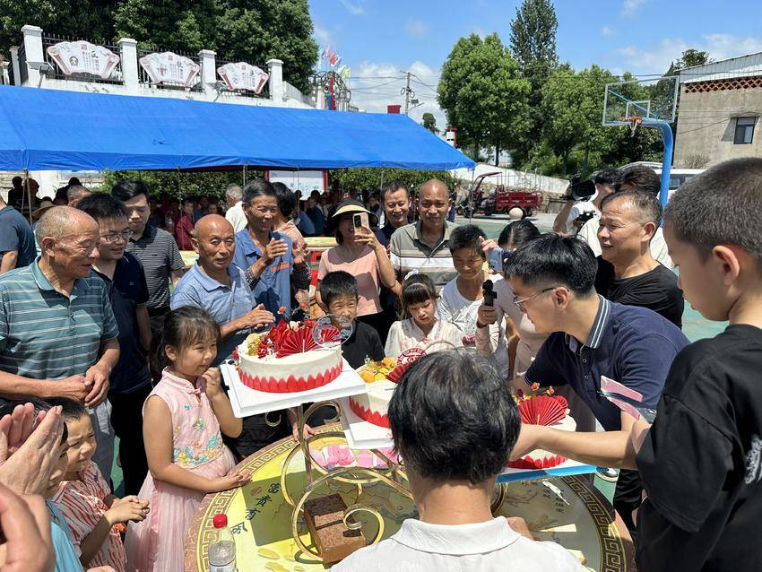 “感謝對農(nóng)村老年人的關(guān)愛,美味佳肴讓我感受到家的溫暖,很開心!”金墩村4組74歲的戴漢榮高興地說。活動中,大悟縣二醫(yī)院醫(yī)生給參加壽星宴的老人進行義診和體檢,志愿者則為老人義務(wù)理發(fā),表演舞蹈和歌曲,中國科信集團駐金墩村工作隊、金墩村村委會向每位老人贈送一個保溫杯,并為今年1至8月過生日的200名老人精心舉辦豐盛的集體壽星宴,送上生日祝福。