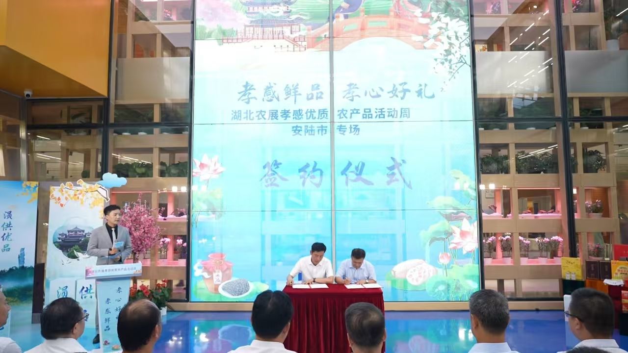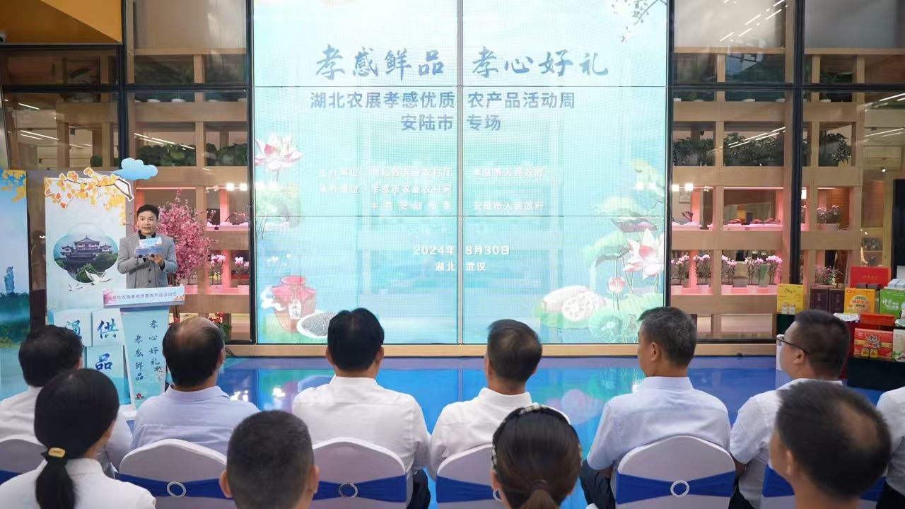 荊楚網(wǎng)(湖北日?qǐng)?bào)網(wǎng))訊(通訊員 呂科選)安陸有禮,涢供優(yōu)品。8月30日上午,湖北農(nóng)展孝感優(yōu)質(zhì)農(nóng)產(chǎn)品活動(dòng)周安陸市專場(chǎng)推介活動(dòng)在湖北省優(yōu)質(zhì)農(nóng)產(chǎn)品展銷中心(以下簡(jiǎn)稱“湖北農(nóng)展”)成功舉行,安陸市20多家農(nóng)業(yè)龍頭企業(yè)攜70余款農(nóng)產(chǎn)品精彩亮相,為與會(huì)嘉賓及市民端出一席地道的“安陸盛宴”。