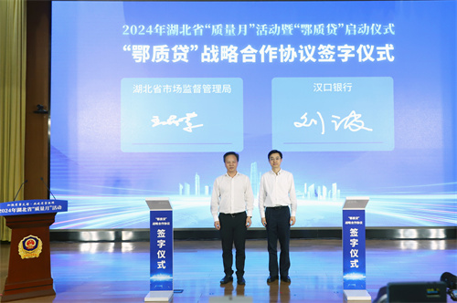 儀式上,湖北省市場監(jiān)督管理局黨組書記、局長王世榮宣布2024年湖北省質(zhì)量月活動暨“鄂質(zhì)貸”正式啟動,湖北省市場監(jiān)督管理局黨組成員、副局長王勤發(fā)布《2023湖北質(zhì)量報(bào)告》白皮書(以下簡稱“白皮書”),省市場監(jiān)管局與漢口銀行簽訂了“鄂質(zhì)貸”戰(zhàn)略合作協(xié)議。