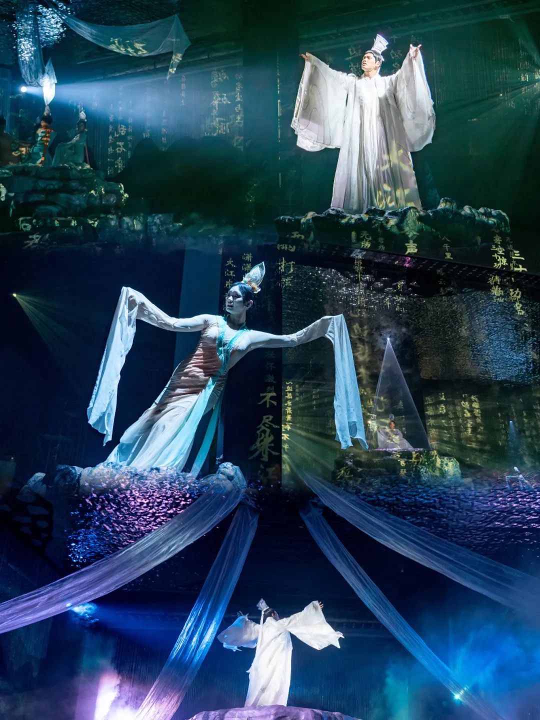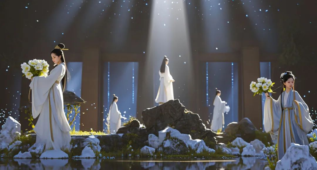 宋文化沉浸式奇幻賞《愛雅宋》立足于風(fēng)雅宋韻和AI動(dòng)機(jī),根據(jù)極具轉(zhuǎn)折度的特殊空間和動(dòng)線設(shè)計(jì),致力于傳統(tǒng)文化融入數(shù)字化創(chuàng)新,通過(guò)虛擬串接角色、AI古詩(shī)新創(chuàng)、全息投射、激光集成控制、機(jī)械裝置程序控制、長(zhǎng)連屏觸摸手感反饋、大畫幅精確數(shù)字化翻轉(zhuǎn)、全場(chǎng)景數(shù)字化聯(lián)動(dòng)等前沿技術(shù),依托全方位虛實(shí)相間的復(fù)合式多媒體配置、極度壓光與提光的沉浸式光影視效、富于時(shí)空折疊意境的舞美創(chuàng)意、情境演藝與機(jī)械裝置巧妙咬合等創(chuàng)意手段,充分發(fā)揮行進(jìn)式觀演體驗(yàn)、各場(chǎng)景既獨(dú)立又聯(lián)通的節(jié)奏變化和系統(tǒng)化控制等優(yōu)勢(shì),在有限的物理空間中將奇幻、唯美、意識(shí)流、大境界等全新體驗(yàn)帶給觀眾。