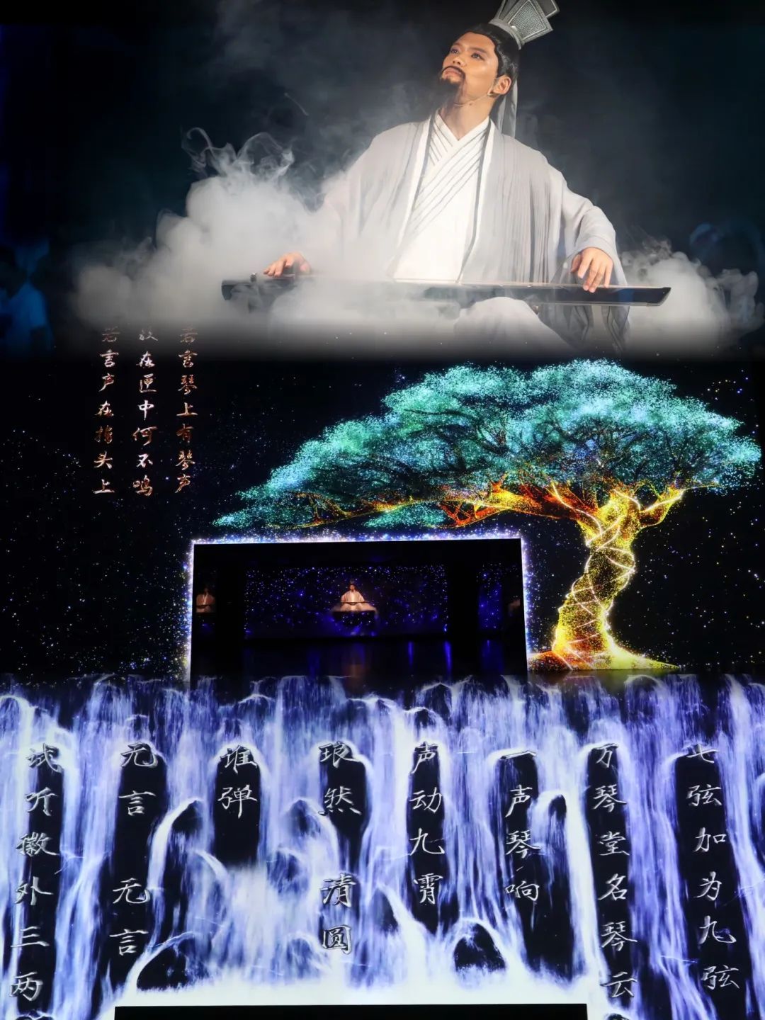 在“琴”境中,一位穿著白衣的男子輕拂古琴,